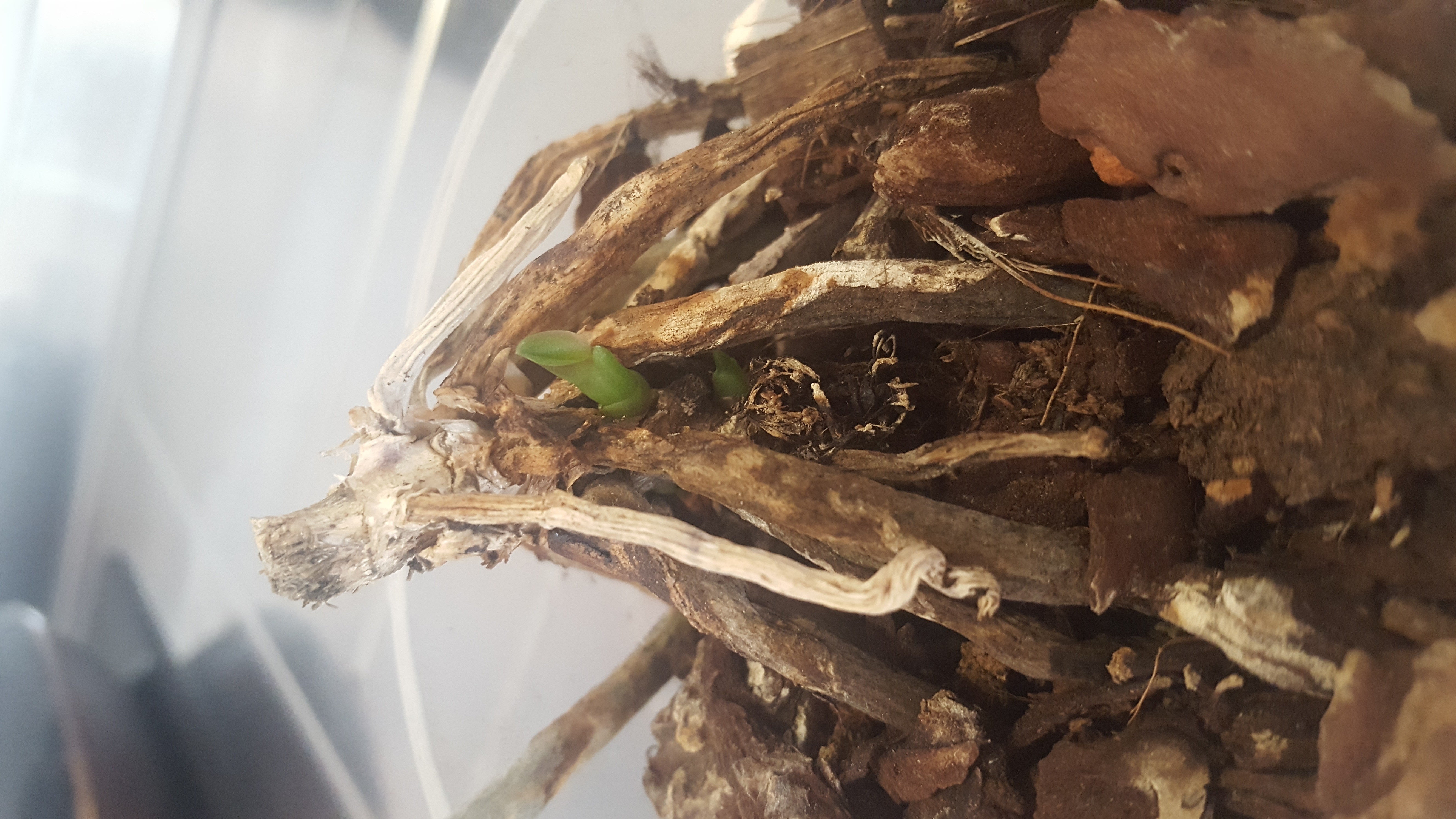 Quand vous voyez une nouvelle feuille puis une autre puis une autre et cela se fait lentement vous saurez que votre orchidée est sur la bonne voie. Enfin les feuilles déjà présentes ne changeront pas ou mourront éventuellement. Si il a encore de la force il emettra un rejet comme l a dit Tite Nabou.