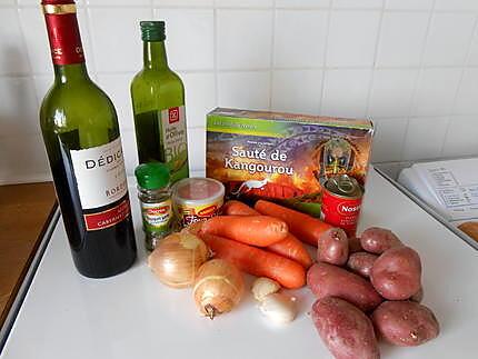 Ajouter lail haché et les tomates découpées en rondelles et faire dorer encore qques minutes. Verser dans une cocotte un peu dhuile dolive et faire revenir les oignons coupés en petits morceaux et lail écrasé sans laisser brunir. Mettre les morceaux de sauté de kangourou dans un saladier saler poivrer mélanger Ajouter les légumes émincés le thym et le laurier mouiller avec le vin et mettre à mariner une nuit au frais.