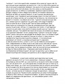 Il ne ne faut pas être cultivé pour apprécier une œuvre. Dans toute oeuvre dart quelque chose échappe à tout embrigadement. Le regard vers lœuvre dart se réduit à une pure réceptivité du sentiment de plaisir.