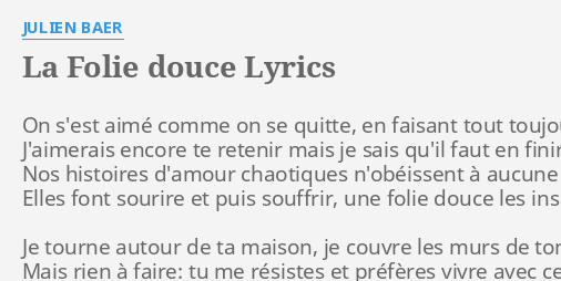La Folie Douce Lyrics By Julien Baer On S Est Aime Comme
