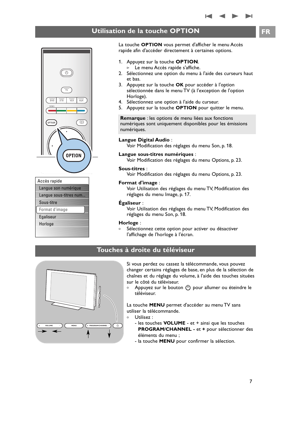 Utilisation De La Touche Option Touches A Droite Du Televiseur Philips Cineos Televiseur Numerique A Ecran Large Manuel D Utilisation Page 7 66