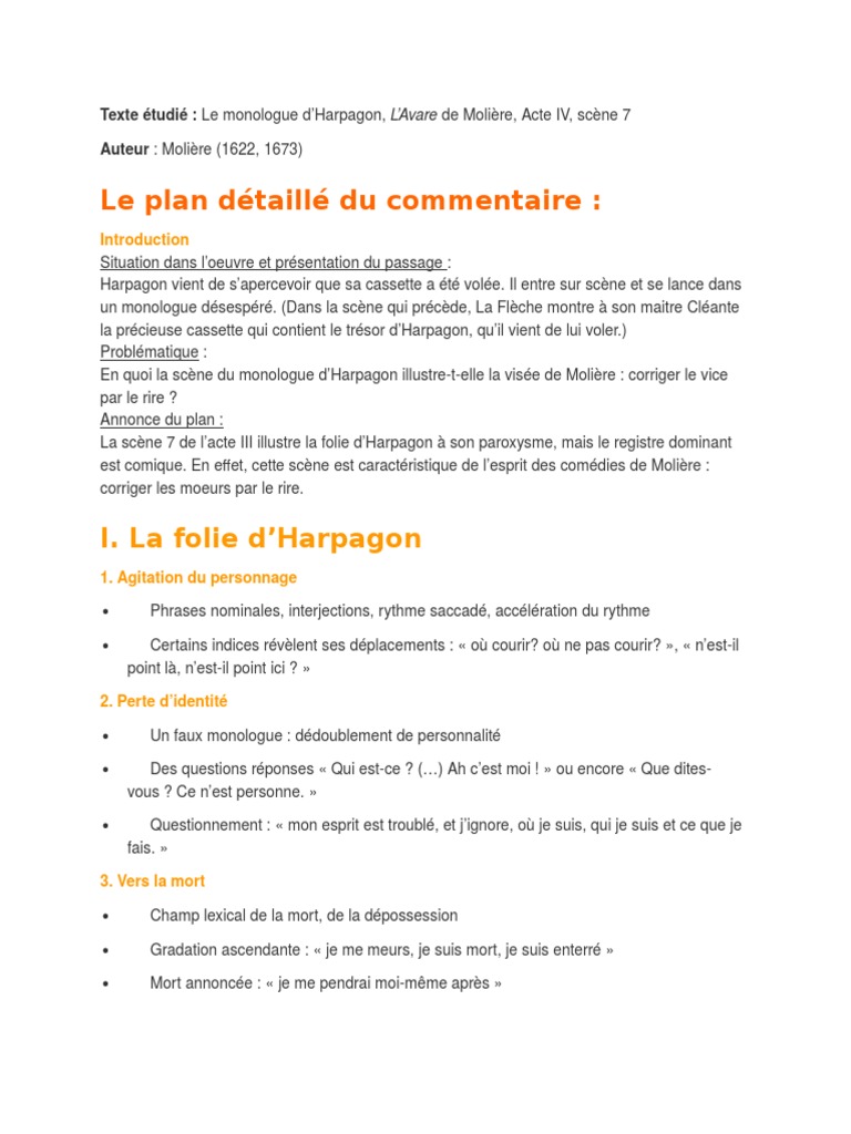 Analyse du Monologue de lAvare. Cest tout ce que nous pouvons vous informer sur le texte l avare acte 4 scene 7. Je vous commets au soin de Harpagon.